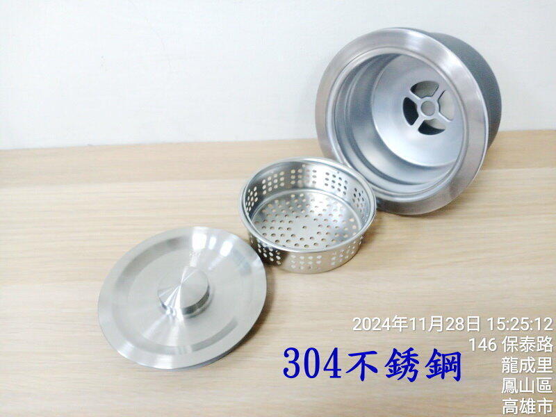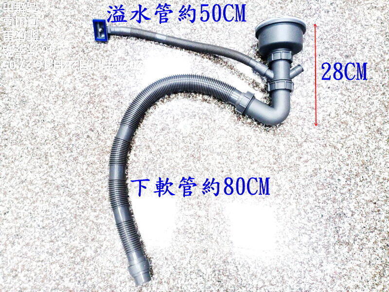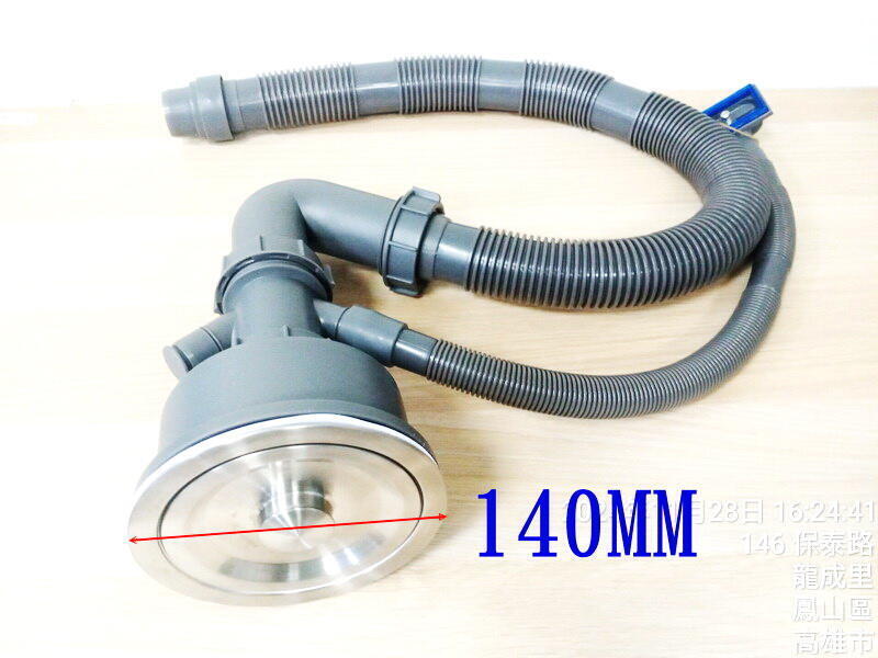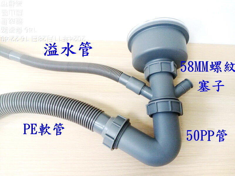 140MM單槽雙溢水50下水套組: 304不銹鋼內杯,304不銹鋼提籠,蓋子+PP外杯,50PP管,50PE下水軟管,PE溢水軟管.