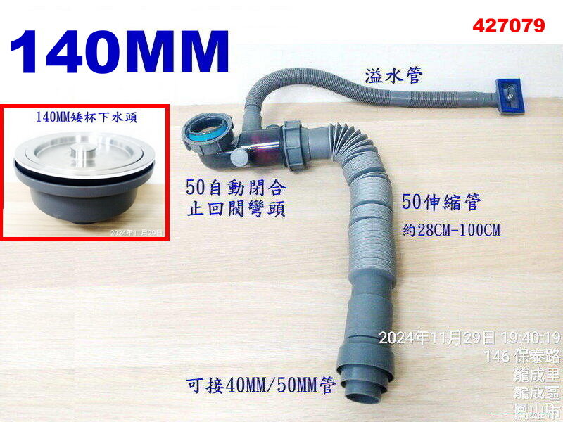 規格: 140MM/58MM口螺紋下水器+50自動閉合止回閥彎頭+50mmPE伸縮軟管