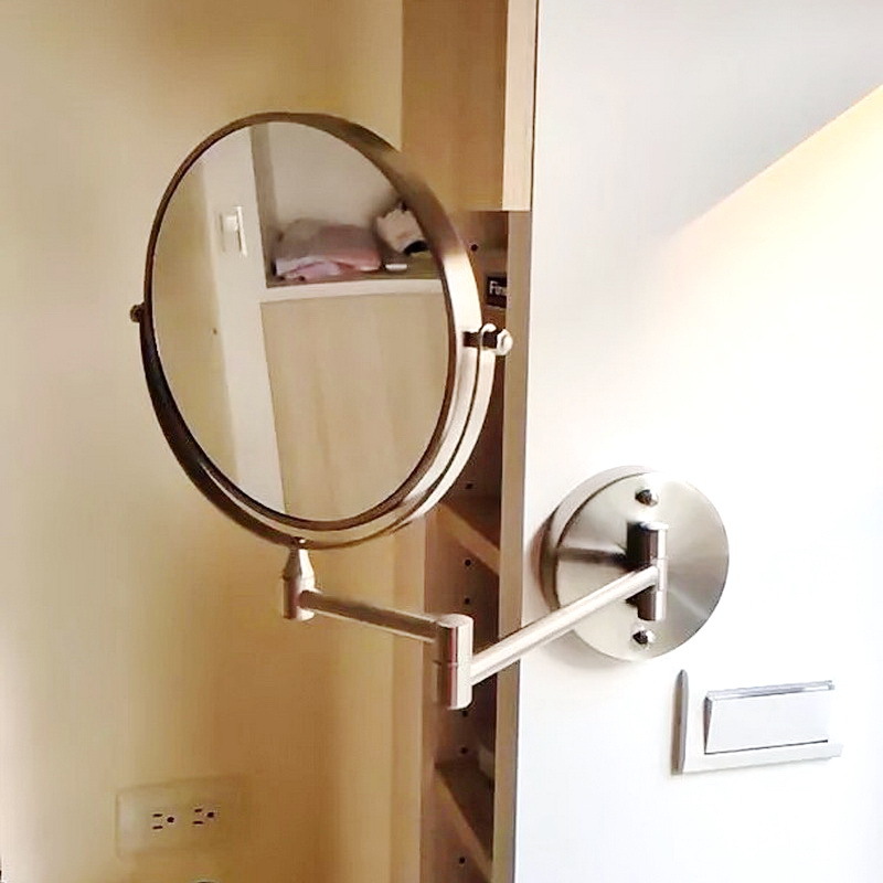 8寸就是鏡面直徑為20cm,產品都是可以360°旋轉的。不用時可以靠牆,不占空間!傳統鏡子安裝之後就固定在那裡無法移動任意調節,這款壁掛鏡子解決傳統鏡子單一固定無法根據自己需要調整位置的遺憾,一款鏡子2種感受,一面正常,一面3倍放大更適合化妝,男士刮鬍須,細節放大使用更方便。超完美壁掛鏡子,鍍層超厚,永不生鏽,鏡面效果,超閃亮,圓形底座時尚大方。
